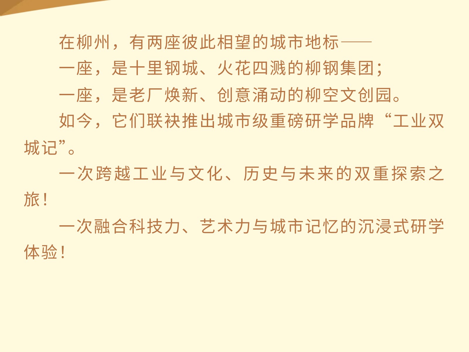 柳鋼+柳空|“工業(yè)雙城記”聯(lián)合研學(xué)品牌震撼上線! 發(fā)布時間:2025年04月25日 16時來源:本站原創(chuàng)瀏覽:97 人次