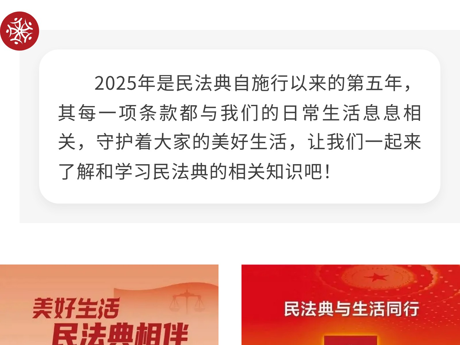 2025年民法典主題宣傳:美好生活,民法典與你同行。 發(fā)布時間:2025年06月05日 13時來源:本站原創(chuàng)瀏覽:200 人次