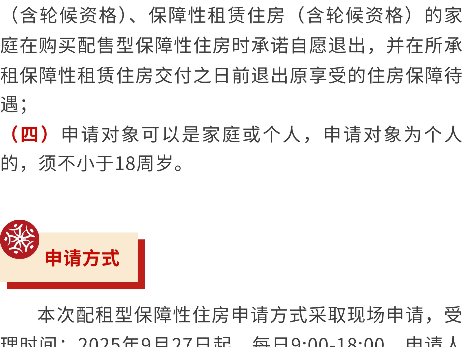 關(guān)于開展2025年第一批配租型保障性住房申請(qǐng)受理工作的公告 發(fā)布時(shí)間:2025年09月28日 11時(shí)來源:本站原創(chuàng)瀏覽:151 人次