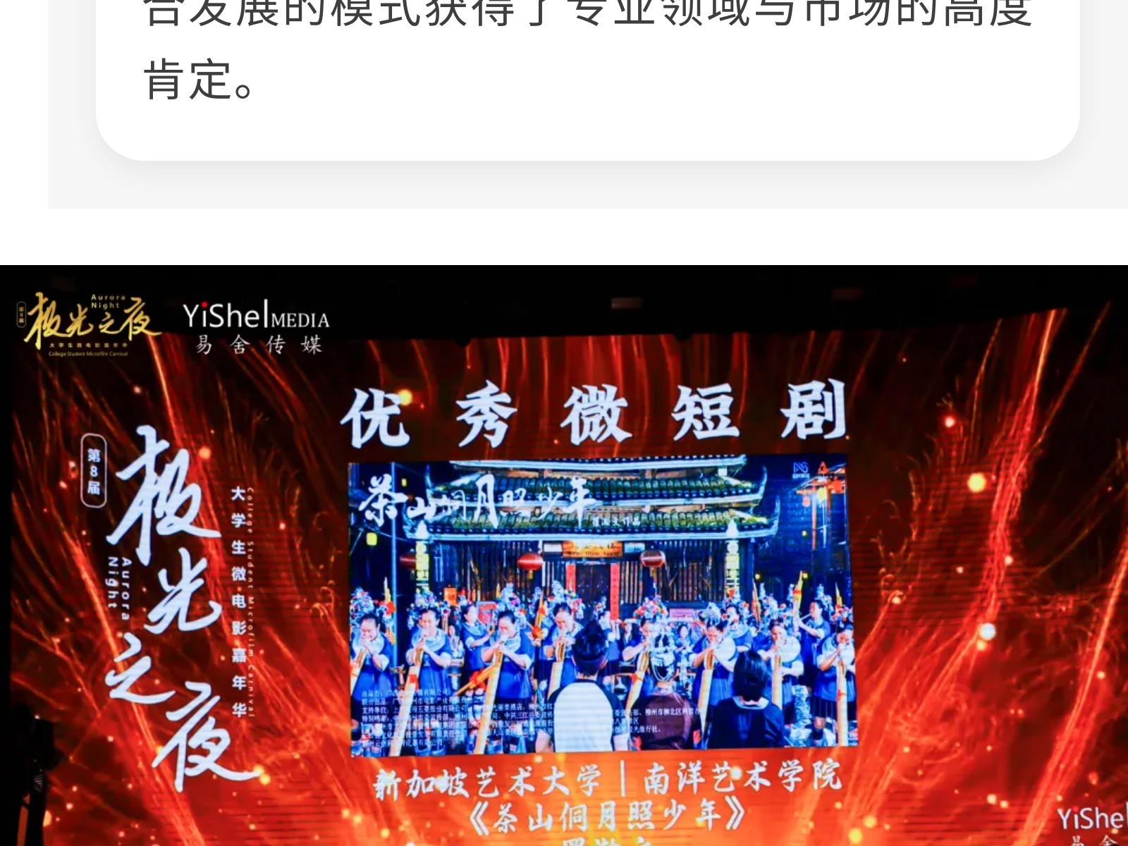 捷報(bào)!文旅集團(tuán)電影公司出品短劇榮膺“極光之夜”優(yōu)秀微短劇獎(jiǎng) 發(fā)布時(shí)間:2025年10月21日 10時(shí)來源:本站原創(chuàng)瀏覽:47 人次