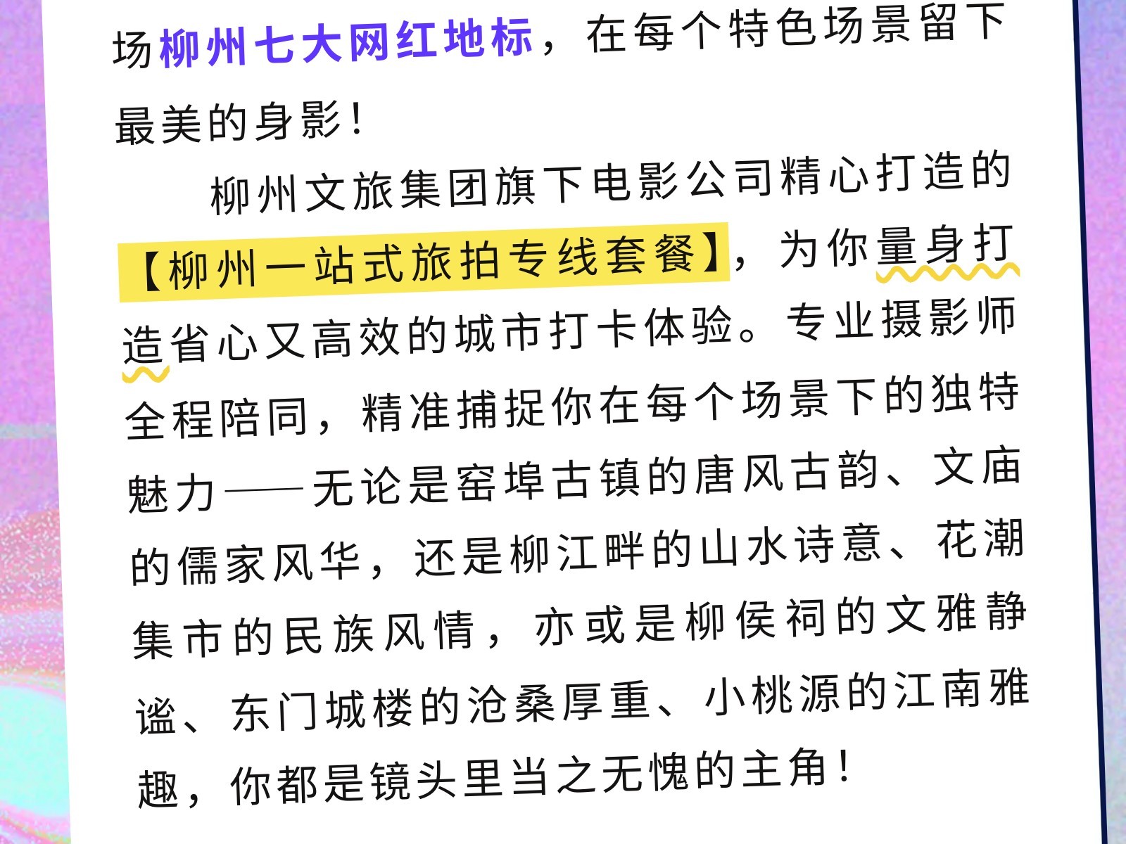 文旅集團電影公司創(chuàng)新打造獨家旅拍專線!穿越柳州絕美打卡點,定制你的專屬城市旅行大片! 發(fā)布時間:2025年11月05日 10時來源:本站原創(chuàng)瀏覽:102 人次