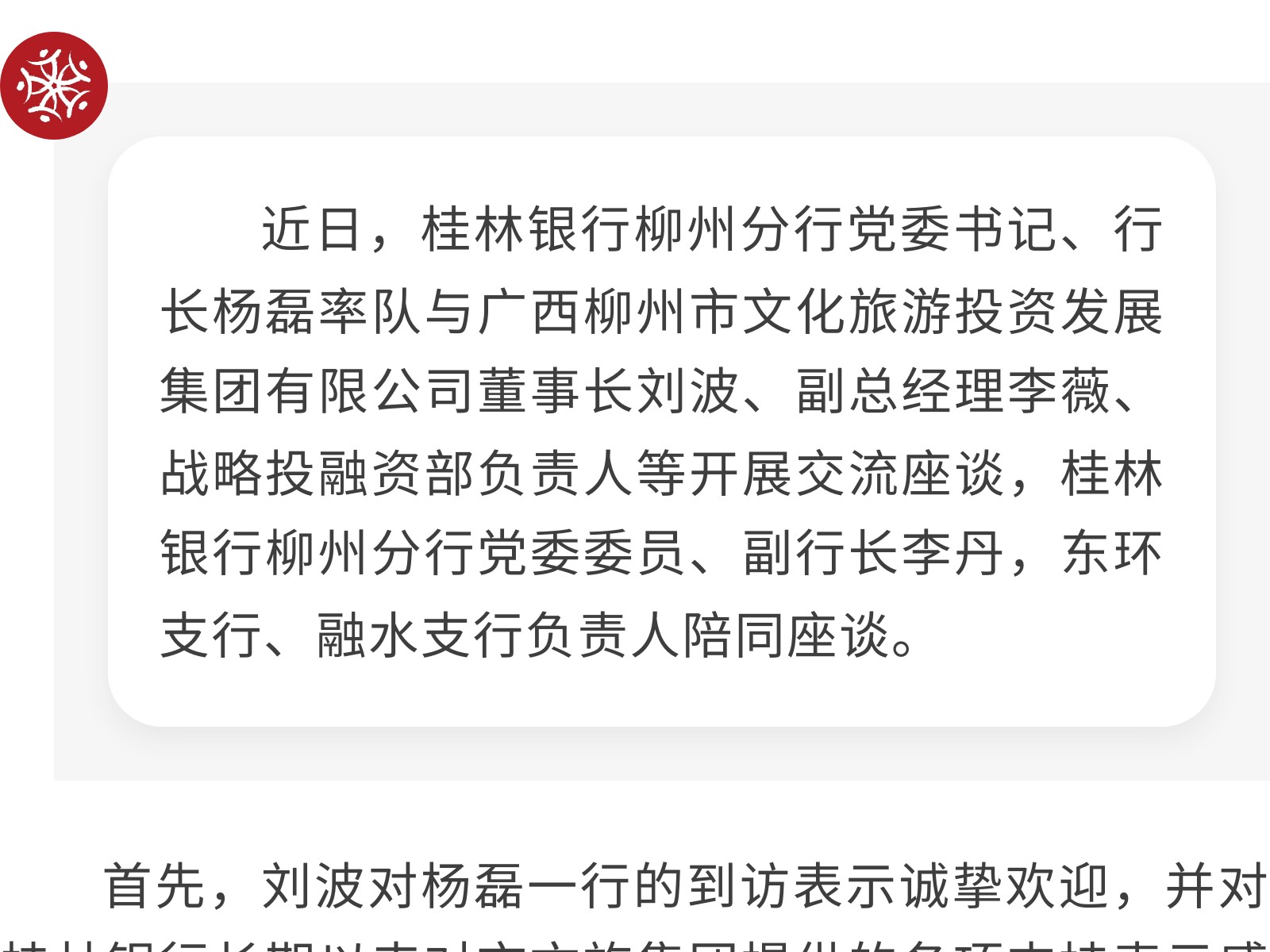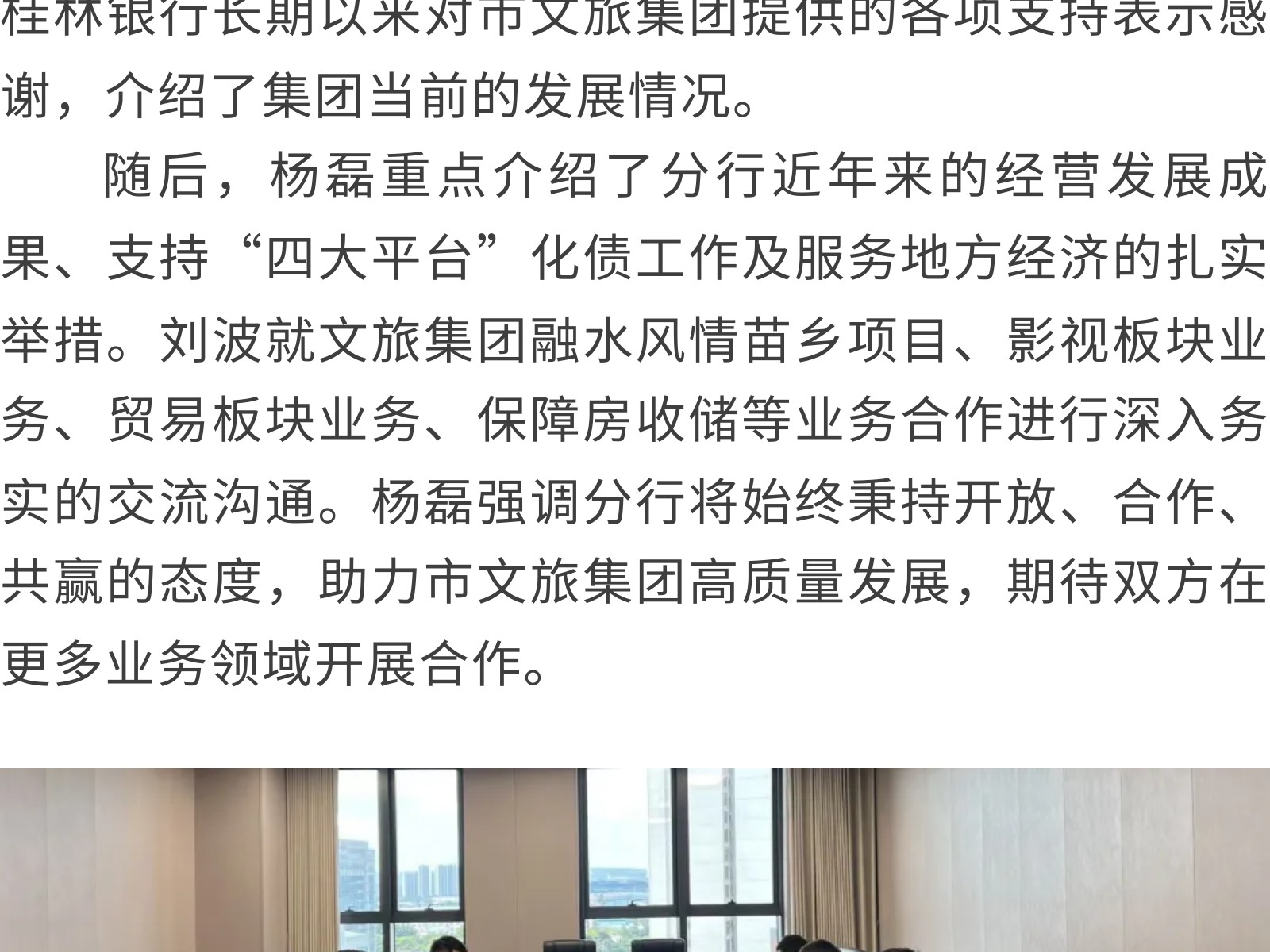 桂林銀行柳州分行到市文旅集團(tuán)開展交流座談 發(fā)布時(shí)間:2025年11月28日 09時(shí)來源:本站原創(chuàng)瀏覽:33 人次