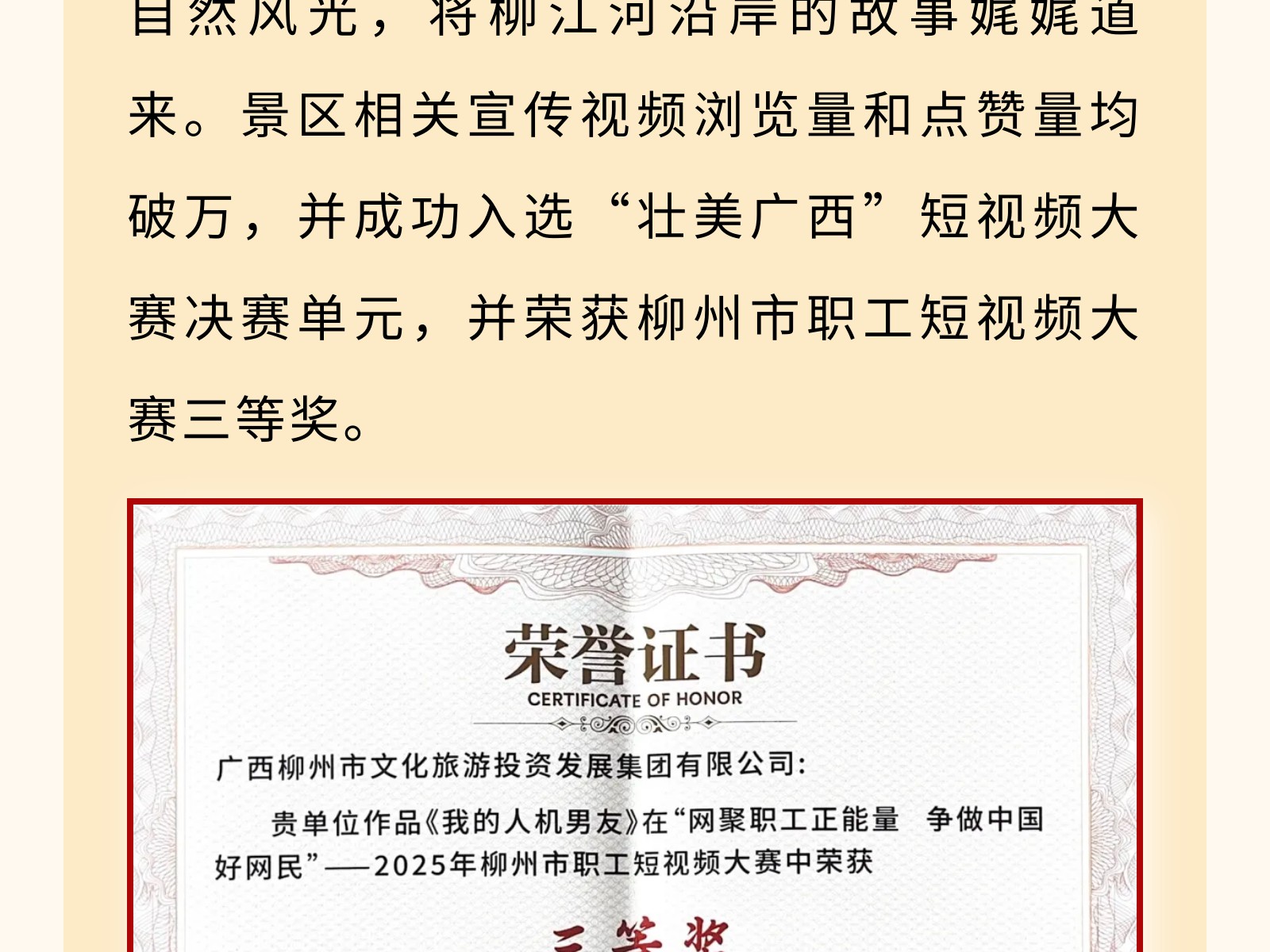【文旅聚勢(shì)2025】碧水映城,風(fēng)帆勁起——百里柳江公司書寫文旅融合新篇章 發(fā)布時(shí)間:2025年12月25日 10時(shí)來源:本站原創(chuàng)瀏覽:43 人次