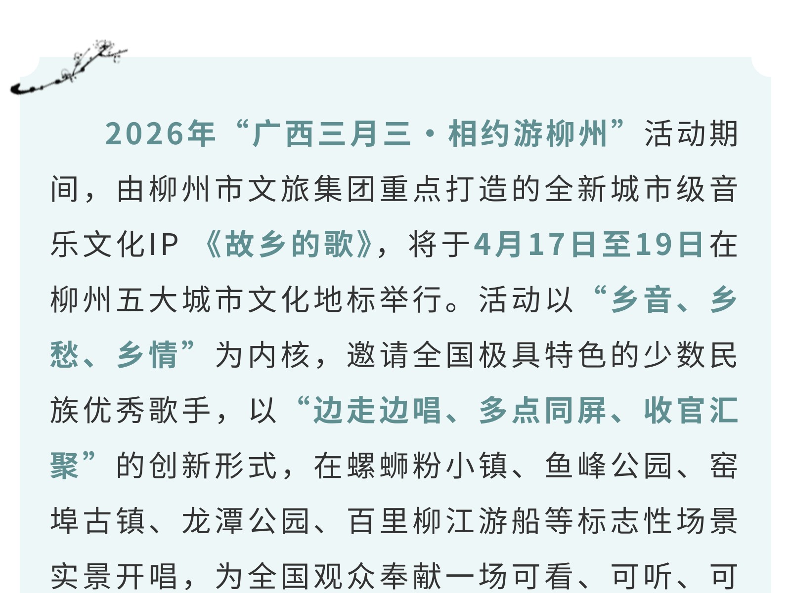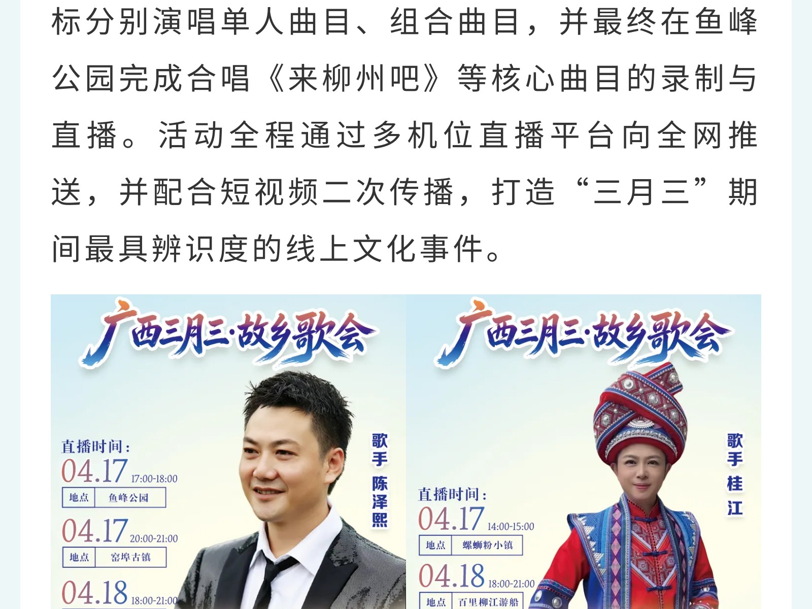 鄉(xiāng)音為引,山水為臺——《故鄉(xiāng)的歌》全國少數(shù)民族歌手實景歌會邀您線上游柳州 發(fā)布時間:2026年04月15日 11時來源:本站原創(chuàng)瀏覽:7 人次