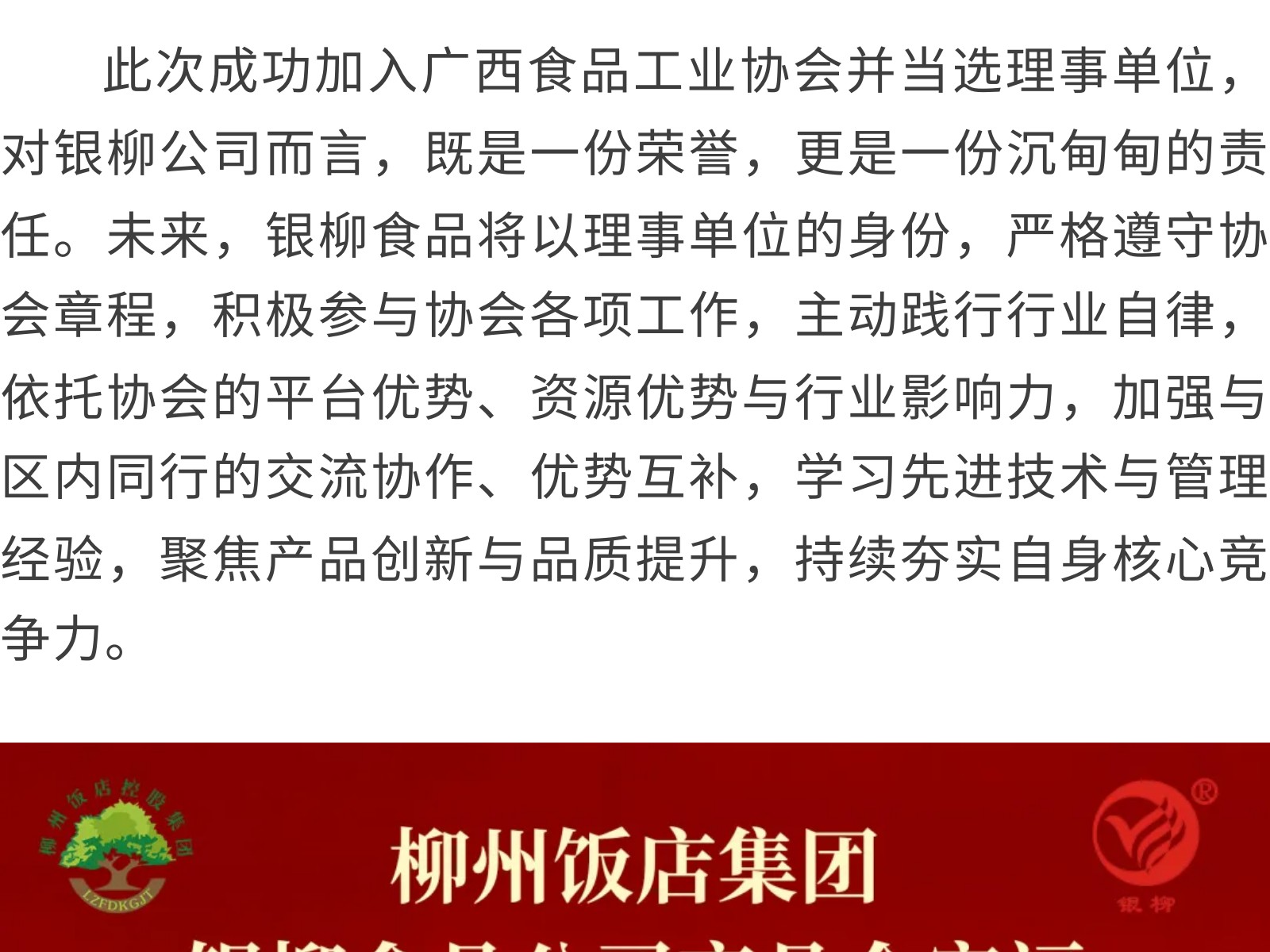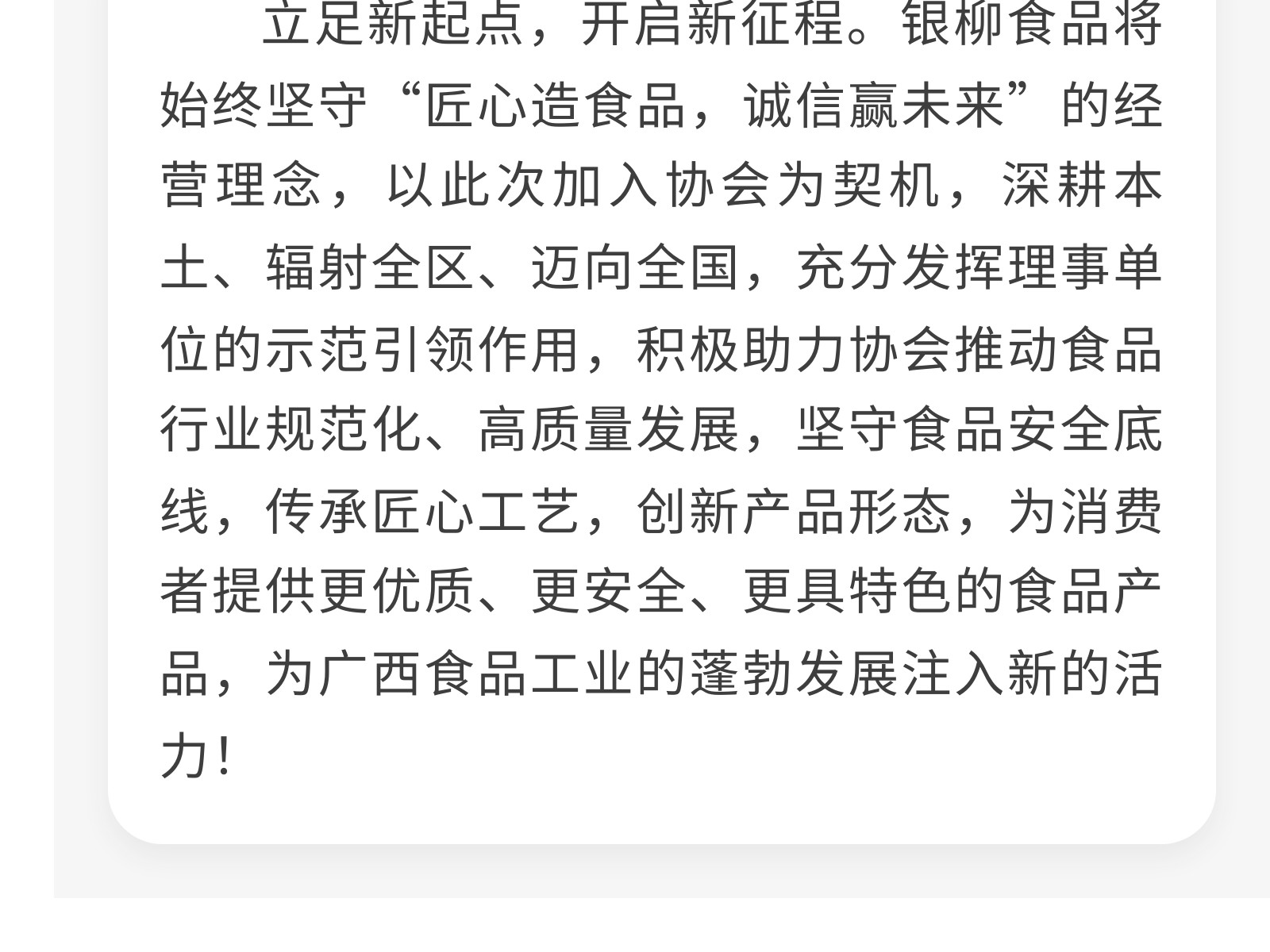 凝心聚力啟新程、勇?lián)姑蛭磥怼菔秀y柳食品有限公司當(dāng)選廣西食品工業(yè)協(xié)會理事單位 發(fā)布時間:2026年02月25日 15時來源:本站原創(chuàng)瀏覽:67 人次